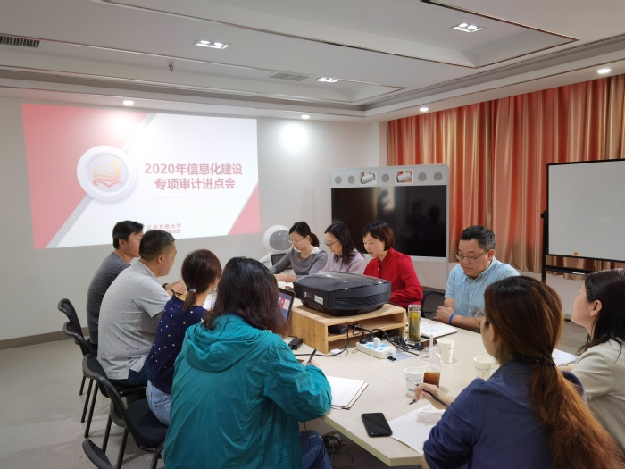 9月28日上午,我校在定淮门校区图书馆楼703室召开2020年信息化建设专项经费审计进点会。会议由审计处处长袁桂霞主持,信息化建设处王小军总工程师和部门内设机构负责人、南审希地会计师事务所代表、审计处全体人员参加了本次会议。