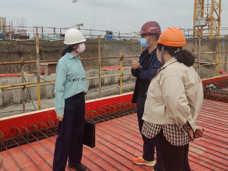 基建处处长王卫、审计处李璐璐、审计顾问姜艳在新校区一期一标段轮训公寓G-1#现场
